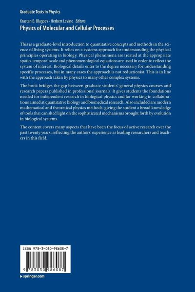 The book bridges the gap between graduate students' general physics courses and research papers published in professional journals. It gives students the foundations needed for independent research in biological physics and for working in collaborations aimed at quantitative biology and biomedical research. Also included are modern mathematical and theoretical physics methods, giving the student a broad knowledge of tools that can shed light on the sophisticated mechanisms brought forth by evolution in biological systems.