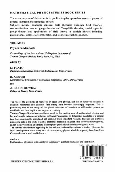 This volume contains the proceedings of the Colloquium "Analysis, Manifolds and Physics" organized in honour of Yvonne Choquet-Bruhat by her friends, collaborators and former students, on June 3, 4 and 5, 1992 in Paris. Its title accurately reflects the domains to which Yvonne Choquet-Bruhat has made essential contributions. Since the rise of General Relativity, the geometry of Manifolds has become a non-trivial part of space-time physics. At the same time, Functional Analysis has been of enormous importance in Quantum Mechanics, and Quantum Field Theory. Its role becomes decisive when one considers the global behaviour of solutions of differential systems on manifolds. In this sense, General Relativity is an exceptional theory in which the solutions of a highly non-linear system of partial differential equations define by themselves the very manifold on which they are supposed to exist. This is why a solution of Einstein's equations cannot be physically interpreted before its global behaviour is known, taking into account the entire hypothetical underlying manifold. In her youth, Yvonne Choquet-Bruhat contributed in a spectacular way to this domain stretching between physics and mathematics, when she gave the proof of the existence of solutions to Einstein's equations on differential manifolds of a quite general type. The methods she created have been worked out by the French school of mathematics, principally by Jean Leray. Her first proof of the local existence and uniqueness of solutions of Einstein's equations inspired Jean Leray's theory of general hyperbolic systems.