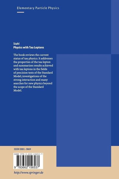 The book reviews the current status of tau physics. It addresses the properties of the tau lepton and summarizes results achieved with tau leptons in the fields of precision tests of the Standard Model, investigations of the strong interaction and many searches for new physics beyond the scope of the Standard Model.