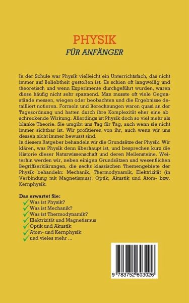 In der Schule war Physik vielleicht ein Unterrichtsfach, das nicht immer auf Beliebtheit gestoßen ist. Es schien oft langweilig und theoretisch und wenn Experimente durchgeführt wurden, waren diese häufig nicht sehr spannend. Man musste oft viele Gegenstände messen, wiegen oder beobachten und die Ergebnisse detailliert notieren. Formeln und Berechnungen waren quasi an der Tagesordnung und hatten durch ihre Komplexität eher eine abschreckende Wirkung. Allerdings ist Physik doch so viel mehr als blanke Theorie. Sie umgibt uns Tag für Tag, auch wenn sie nicht immer sichtbar ist. Wir profitieren von ihr, auch wenn wir uns dessen nicht immer bewusst sind.In diesem Ratgeber behandeln wir die Grundsätze der Physik. Wir klären, was Physik denn überhaupt ist, und besprechen kurz die Historie dieser Naturwissenschaft und deren Meilensteine. Weiterhin werden wir, neben einigen Grundsätzen und wesentlichen Begriffserklärungen, die sechs klassischen Themengebiete der Physik behandeln: Mechanik, Thermodynamik, Elektrizität (in Verbindung mit Magnetismus), Optik, Akustik und Atom- bzw. Kernphysik. Das erwartet Sie:-Was ist Physik?-Was ist Mechanik?-Was ist Thermodynamik?-Elektrizität und Magnetismus-Optik und Akustik-Atom- und Kernphysik-und vieles mehr ...