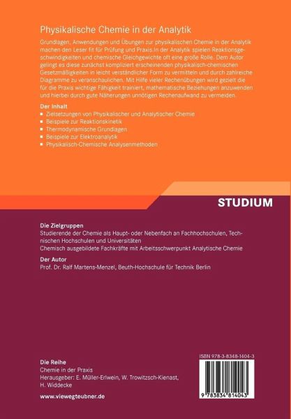 Grundlagen, Anwendungen und Übungen zur physikalischen Chemie in der Analytik machen den Leser fit für Prüfung und Praxis.