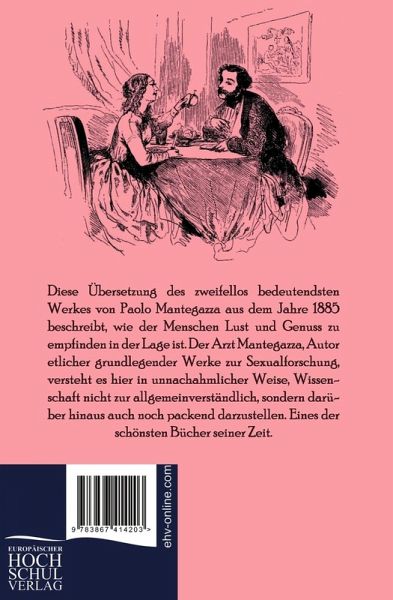 Diese Übersetzung des zweifellos bedeutendsten Werkes von Paolo Mantegazza aus dem Jahre 1885 beschreibt, wie der Menschen Lust und Genuss zu empfinden in der Lage ist. Der Arzt Mantegazza, Autor etlicher grundlegender Werke zur Sexualforschung, versteht es hier in unnachahmlicher Weise, Wissenschaft nicht zur allgemeinverständlich, sondern darüber hinaus auch noch packend darzustellen. Eines der schönsten Bücher seiner Zeit.