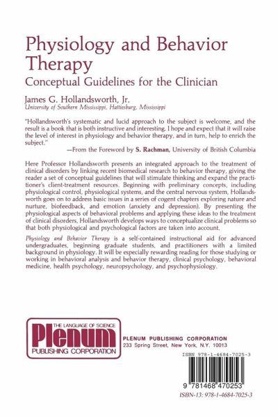 Despite the widespread use of psychophysiological concepts and meth ods in behavior therapy, there is no text devoted specifically to the subject. The publication of this book is necessary and timely, and should promote a better appreciation of the physiological roots of behavior therapy. The important connections between physiology and behavior thera py receive insufficient recognition nowadays, despite the fact that his torically one of the two main streams of behavior therapy grew out of a physiological basis. Wolpe's early work was closely connected to phys iology, and in contemporary…mehr