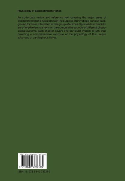 1 Cardiovascular and Respiratory Systems.- 1.1 Functional Morphology of the Cardiovascular and Respiratory Systems.- 1.2 Gas Exchange.- 1.3 Control of the Cardiovascular and Respiratory Systems.- 1.4 Supply of and Demand for Oxygen: Integrated Responses of the Respiratory and Cardiovascular Systems.- References.- 2 The Central Nervous System.- 2.1 The Plan of the Elasmobranch Central Nervous System.- 2.2 Control of Motor Behaviour.- 2.3 Central Analysis of Sensory Information.- 2.4 Concluding Remarks.- References.- 3 Sensory Physiology.- 3.1 Olfactory System.- 3.2 Visual System.- 3.3 Octavolateralis System.- References.- 4 Muscles and Locomotion.- 4.1 General Organization of the Locomotor System.- 4.2 The Locomotor Muscle Fibres.- 4.3 Physiology.- 4.4 Buoyancy and Lift.- 4.5 Swimming.- 4.6 Concluding Remarks.- References.- 5 The Autonomic Nervous System.- 5.1 Anatomy of the Autonomic Nervous System.- 5.2 Chromaffin Tissue.- 5.3 Circulatory System.- 5.4 The Spleen.- 5.5 Gut.- 5.6 Uro-Genital Organs.- 5.7 The Iris.- 5.8 Concluding Remarks.- References.- 6 Salt and Water Balance - Extrarenal Mechanisms.- 6.1 Overall Hydromineral Status.- 6.2 The Retention of Urea and TMAO.- 6.3 Water Fluxes and Permeabilities.- 6.4 Ion Fluxes and Permeabilities.- 6.5 Elimination of Excess Ions.- 6.6 Rectal Gland.- 6.7 Euryhaline and Freshwater Elasmobranchs.- 6.8 Osmoregulation During Development.- References.- 7 Kidney Function.- 7.1 Gross Morphology.- 7.2 Blood Supply.- 7.3 Microanatomy of the Nephron.- 7.4 Kidney Function.- 7.5 Control of Kidney Function.- References.- 8 Acid-Base Regulation.- 8.1 Steady-State Acid-Base Regulation.- 8.1.1 Release of Acid-Base-Relevant Substances.- 8.1.2 Steady-State Acid-Base Status.- 8.1.3 Imidazole Alphastat Regulation.- 8.2 Acid-Base StressConditions.- 8.3 Site and Utilization of Transepithelial Ion Transfer Mechanisms.- 8.4 Conclusion.- References.- 9 Nitrogen Metabolism.- 9.1 Nature and Routes of Excretion.- 9.2 Biochemical Pathways of Formation.- 9.3 Urea Toxicity and Counteraction by Trimethylamine oxide.- 9.4 Physiological and Evolutionary Adaptations of Nitrogen Metabolism for Osmoregulation.- 9.5 Amino Acids and Intracellular Osmoregulation.- References.- 10 Reproductive Physiology.- A The Female.- B The Male.- References.