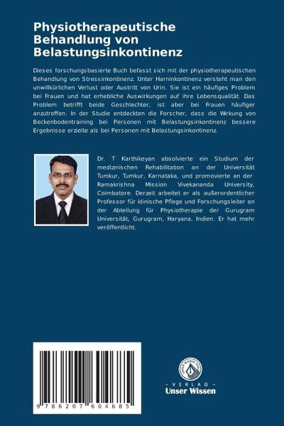 Dieses forschungsbasierte Buch befasst sich mit der physiotherapeutischen Behandlung von Stressinkontinenz. Unter Harninkontinenz versteht man den unwillkürlichen Verlust oder Austritt von Urin. Sie ist ein häufiges Problem bei Frauen und hat erhebliche Auswirkungen auf ihre Lebensqualität. Das Problem betrifft beide Geschlechter, ist aber bei Frauen häufiger anzutreffen. In der Studie entdeckten die Forscher, dass die Wirkung von Beckenbodentraining bei Personen mit Belastungsinkontinenz bessere Ergebnisse erzielte als bei Personen mit Belastungsinkontinenz.