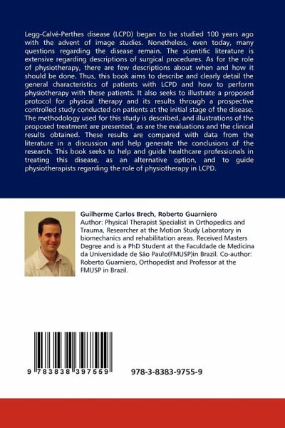 Legg-Calvé-Perthes disease (LCPD) began to be studied 100 years ago with the advent of image studies. Nonetheless, even today, many questions regarding the disease remain. The scientific literature is extensive regarding descriptions of surgical procedures. As for the role of physiotherapy, there are few descriptions about when and how it should be done. Thus, this book aims to describe and clearly detail the general characteristics of patients with LCPD and how to perform physiotherapy with these patients. It also seeks to illustrate a proposed protocol for physical therapy and its results through a prospective controlled study conducted on patients at the initial stage of the disease. The methodology used for this study is described, and illustrations of the proposed treatment are presented, as are the evaluations and the clinical results obtained. These results are compared with data from the literature in a discussion and help generate the conclusions of the research. This book seeks to help and guide healthcare professionals in treating this disease, as an alternative option, and to guide physiotherapists regarding the role of physiotherapy in LCPD.