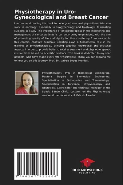 I recommend reading this book to undergraduates and physiotherapists who work in oncology, especially in Urogynecology and Mastology, fascinating subjects to study. The importance of physiotherapists in the monitoring and management of cancer patients is currently being emphasized, with the aim of promoting quality of life and dignity for those suffering from cancer. In this context, constant academic updating plays a fundamental role in the training of physiotherapists, bringing together theoretical and practical aspects in order to provide better clinical assessment and physiotherapeutic interventions based on scientific evidence. This book is dedicated to my dear patients, who have made every effort worthwhile. Thank you for allowing me to help you on this journey. Prof. Dr. Izabela Lopes Mendes.