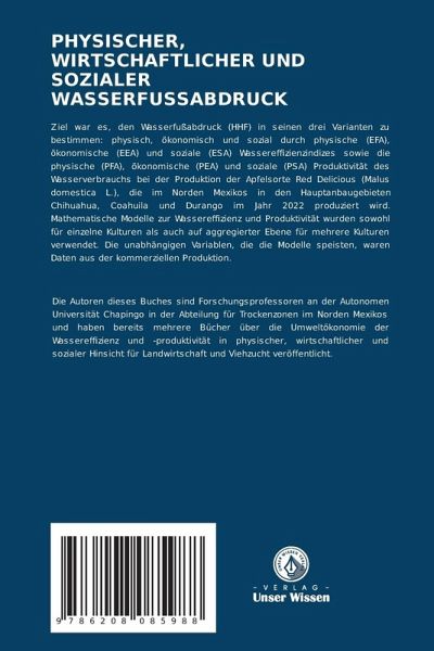 Ziel war es, den Wasserfußabdruck (HHF) in seinen drei Varianten zu bestimmen: physisch, ökonomisch und sozial durch physische (EFA), ökonomische (EEA) und soziale (ESA) Wassereffizienzindizes sowie die physische (PFA), ökonomische (PEA) und soziale (PSA) Produktivität des Wasserverbrauchs bei der Produktion der Apfelsorte Red Delicious (Malus domestica L.), die im Norden Mexikos in den Hauptanbaugebieten Chihuahua, Coahuila und Durango im Jahr 2022 produziert wird. Mathematische Modelle zur Wassereffizienz und Produktivität wurden sowohl für einzelne Kulturen als auch auf aggregierter Ebene für mehrere Kulturen verwendet. Die unabhängigen Variablen, die die Modelle speisten, waren Daten aus der kommerziellen Produktion.