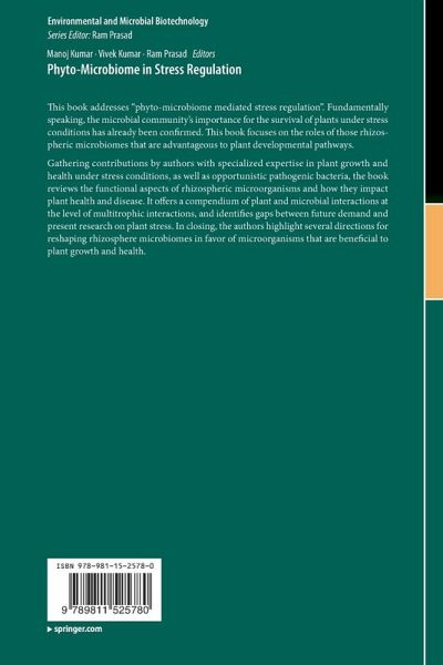 This book addresses "phyto-microbiome mediated stress regulation". Fundamentally speaking, the microbial community's importance for the survival of plants under stress conditions has already been confirmed. This book focuses on the roles of those rhizospheric microbiomes that are advantageous to plant developmental pathways.