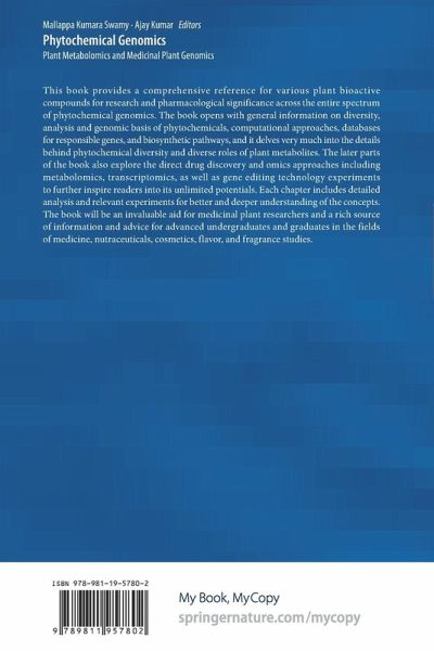 This book provides a comprehensive reference for various plant bioactive compounds for research and pharmacological significance across the entire spectrum of phytochemical genomics. The book opens with general information on diversity, analysis and genomic basis of phytochemicals, computational approaches, databases for responsible genes, and biosynthetic pathways, and it delves very much into the details behind phytochemical diversity and diverse roles of plant metabolites. The later parts of the book also explore the direct drug discovery and omics approaches including metabolomics, transcriptomics, as well as gene editing technology experiments to further inspire readers into its unlimited potentials. Each chapter includes detailed analysis and relevant experiments for better and deeper understanding of the concepts. The book will be an invaluable aid for medicinal plant researchers and a rich source of information and advice for advanced undergraduates and graduates in the fields of medicine, nutraceuticals, cosmetics, flavor, and fragrance studies.