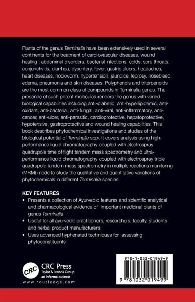 Contents List of figures vii List of tables ix Preface xi Acknowledgments xiii Authors xv List of abbreviations and units xvii 1 Terminalia: Ethno- and Phytopharmacological Review 1 2 Identification of Bioactive Phytoconstituents of Terminalia Species by HPLC-ESI-QTOF- MS/MS 43 3 Quantification of Phenolic Compounds in Six Terminalia Species by UPLC-QqQLIT-MS/MS 89 4 Simultaneous Estimation of Phytoconstituents in T. chebula Fruit and Its Marketed Polyherbal Formulations 107 References 115 Index 133