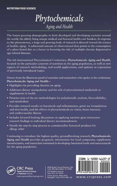 With the expansion of the aging population, researchers are increasingly focusing on the role of nutrition, plant-based diets, and phytochemicals in healthy aging. Phytochemicals: Aging and Health illustrates the role of phytochemicals in disease prevention, providing an understanding of their relationship to healthy aging in an effort to promote optimal health and disease prevention. This text presents information on polyphenols, flavonoid analysis, botanical therapeutics and chronic disease prevention, carotenoids and visual function, green tea and skin care, pomegranate and cardiovascular disease, nutrient-gene interactions, and personalized nutrition, with a focus on nutrigenetics as a means of nutrition therapy.