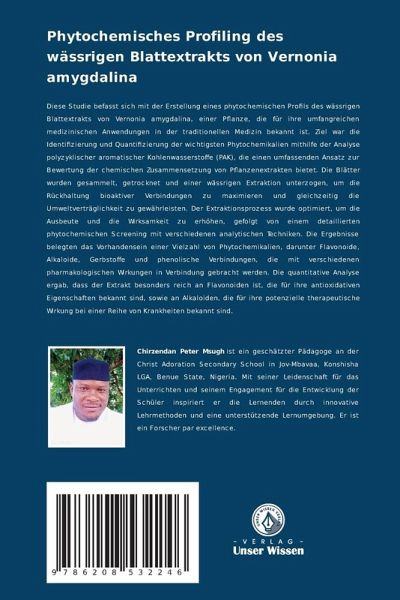Diese Studie befasst sich mit der Erstellung eines phytochemischen Profils des wässrigen Blattextrakts von Vernonia amygdalina, einer Pflanze, die für ihre umfangreichen medizinischen Anwendungen in der traditionellen Medizin bekannt ist. Ziel war die Identifizierung und Quantifizierung der wichtigsten Phytochemikalien mithilfe der Analyse polyzyklischer aromatischer Kohlenwasserstoffe (PAK), die einen umfassenden Ansatz zur Bewertung der chemischen Zusammensetzung von Pflanzenextrakten bietet. Die Blätter wurden gesammelt, getrocknet und einer wässrigen Extraktion unterzogen, um die Rückhaltung bioaktiver Verbindungen zu maximieren und gleichzeitig die Umweltverträglichkeit zu gewährleisten. Der Extraktionsprozess wurde optimiert, um die Ausbeute und die Wirksamkeit zu erhöhen, gefolgt von einem detaillierten phytochemischen Screening mit verschiedenen analytischen Techniken. Die Ergebnisse belegten das Vorhandensein einer Vielzahl von Phytochemikalien, darunter Flavonoide, Alkaloide, Gerbstoffe und phenolische Verbindungen, die mit verschiedenen pharmakologischen Wirkungen in Verbindung gebracht werden. Die quantitative Analyse ergab, dass der Extrakt besonders reich an Flavonoiden ist, die für ihre antioxidativen Eigenschaften bekannt sind, sowie an Alkaloiden, die für ihre potenzielle therapeutische Wirkung bei einer Reihe von Krankheiten bekannt sind.