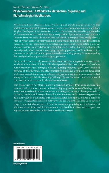 This book, written by internationally recognized scholars from various countries, represents the state-of-the-art understanding of plant hormones' biology, signal transduction and implications. Aimed at a wide range of readers, including researchers, students, teachers and many others who have interests in this flourishing research field, every section is concluded with biotechnological strategies to modulate hormone contents or signal transduction pathways and crosstalk that enable us to develop crops in asustainable manner. Given the important physiological implications of plant hormones in stressful environments, our book is finalized with chapters on phytohormonal crosstalks under abiotic and biotic stresses.