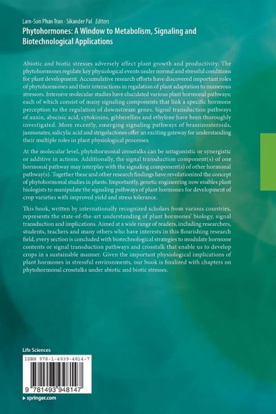 This book, written by internationally recognized scholars from various countries, represents the state-of-the-art understanding of plant hormones' biology, signal transduction and implications. Aimed at a wide range of readers, including researchers, students, teachers and many others who have interests in this flourishing research field, every section is concluded with biotechnological strategies to modulate hormone contents or signal transduction pathways and crosstalk that enable us to develop crops in asustainable manner. Given the important physiological implications of plant hormones in stressful environments, our book is finalized with chapters on phytohormonal crosstalks under abiotic and biotic stresses.