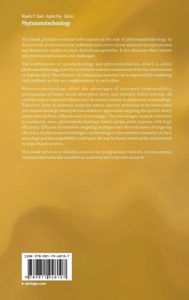 This book provides essential information on the role of phytonanotechnology in the removal of environmental pollutants and covers recent advances in experimental and theoretical studies on plant-derived nanoparticles. It also discusses their current and potential applications and challenges.The combination of nanotechnology and phytoremediation, which is called phytonanotechnology, have the potential to remove contaminants from the environment or degrade them. The efficiency of contaminant removal can be improved by combining both methods as they are complementary to each…mehr
