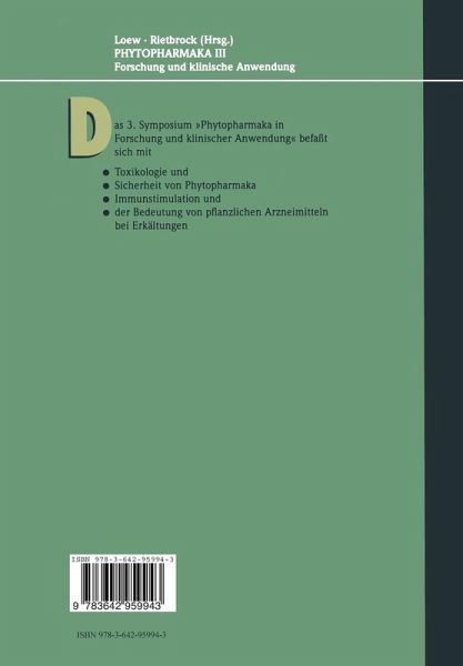 I. Toxikologie und Sicherheit von Phytopharmaka.- Nutzen und Grenzen von Mutagenitäts- und Kanzerogenitätsstudien.- Zur Toxikologie von Phytopharmaka.- Pharmakologie und Klinik ätherischer Öle.- Echinacea: Kritisches aus pharmazeutischer Sicht.- Indikationsstellungen für den Einsatz von Immunstimulanzien und Strategien für den klinisch-immunologischen Wirksamkeitsnachweis.- Risk-Benefit Evaluation of Immunostimulants.- Adaptogene, ein neues Forschungsgebiet.- II. Erkrankungen der Atemwege.- Statistische Analyse der Symptome von Erkältungskrankheiten und ihre Bedeutung.- Testung auf Wirksamkeit bei Erkrankungen der oberen Atemwege.- Der banale Atemwegsinfekt.- Pathophysiologie und klinische Diagnostik entzündlicher Erkrankungen der oberen Atemwege.- Entzündliche Erkrankungen der oberen Atemwege.- Experimental and clinical methodologies on efficacy of expectorants using the example of guaifensin.- Phytomedicines in the treatment of diseases of the lower respiratory tract. What is proven?.- Phytopharmaka bei katarrhalischen Erkrankungen der oberen und unteren Atemwege.- Katarrhalische Erkrankungen aus der Sicht des Allgemeinarztes.- Therapeutisches Profil eines Spitzwegerichkraut-Fluidextraktes bei akuten respiratorischen Erkrankungen im Kindes- und Erwachsenenalter.- Zusammenfassung und Ausblick.