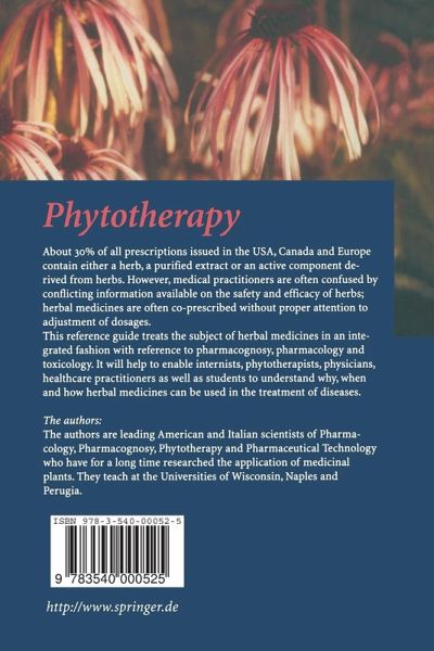 The book: About 30% of all prescriptions issued in the USA, Canada and Europe contain either a herb, a purified extract or an active component derived from herbs. However, medical practitioners are often confused by conflicting information available on the safety and efficacy of herbs; herbal medicines are often co-prescribed without proper attention to adjustment of dosages. This reference guide treats the subject of herbal medicines in an integrated fashion with reference to pharmacognosy, pharmacology and toxicology. It will help to enable internists, phytotherapists, physicians, healthcare practitioners as well as students to understand why, when and how herbal medicines can be used in the treatment of diseases. The authors: The authors are leading American and Italian scientists of Pharmacology and Pharmaceutical Technology who have for a long time researched the application of medicinal plants. They teach at the Universities of Wisconsin, Naples and Perugia.