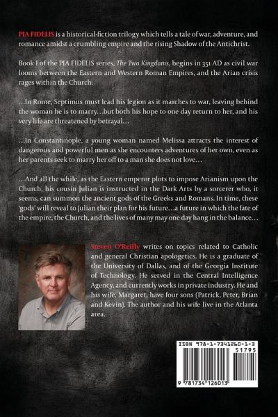 PIA FIDELIS is a historical-fiction trilogy which tells a tale of war, adventure, and romance amidst a crumbling empire and the rising Shadow of the Antichrist. Book I of the PIA FIDELIS series, The Two Kingdoms, begins in 351 AD as civil war looms between the Eastern and Western Roman Empires, and the Arian crisis rages within the Church. ...in Rome, Septimus must lead his legion as it marches to war, leaving behind the woman he is to marry...but both his hope to one day return to her, and his very life are threatened by betrayal... ...In Constantinople, a young woman named Melissa attracts the interest of dangerous and powerful men as she encounters adventures of her own, even as her parents seek to marry her off to a man she does not love... ...And all the while, as the Eastern emperor plots to impose Arianism upon the Church, his cousin Julian is instructed in the Dark Arts by a sorcerer who, it seems, can summon the ancient gods of the Greeks and Romans. In time, these 'gods' will reveal to Julian their plan for his future...a future in which the fate of the empire, the Church, and the lives of many may one day hang in the balance...
