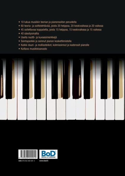 Pianistin käsikirja on musiikinteorian ja pianonsoiton opas, joka sisältää mm.: - 10 lukua musiikin teorian ja pianonsoiton perusteita - 60 teoria- ja soittotehtävää, joista 20 helppoa, 20 keskivaikeaa ja 20 vaikeaa - 45 soitettavaa kappaletta, joista 15 helppoa, 15 keskitasoista ja 15 haastavaa - 40 säestysmallia - Useita nuotti- ja kuvaesimerkkejä - Sointupankki ja soinnut pianon koskettimistolla - Kaikki duuri- ja molliasteikot, kolmisoinnut ja kadenssit pianolle - Kattavan musiikkisanaston