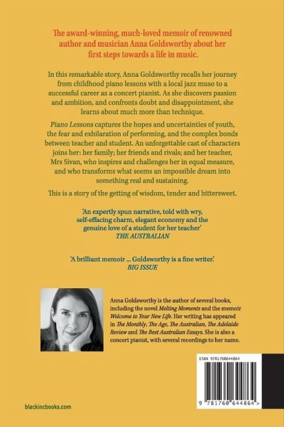 The award-winning, much-loved memoir of renowned author and musician Anna Goldsworthy about her first steps towards a life in music. In this remarkable story, Anna Goldsworthy recalls her journey from childhood piano lessons with a local jazz muso to a successful career as a concert pianist. As she discovers passion and ambition, and confronts doubt and disappointment, she learns about much more than technique. Piano Lessons captures the hopes and uncertainties of youth, the fear and exhilaration of performing, and the complex bonds between teacher and student. An unforgettable cast of characters joins her: her family; her friends and rivals; and her teacher,Mrs Sivan, who inspires and challenges her in equal measure, and who transforms what seems an impossible dream into something real and sustaining. This is a story of the getting of wisdom, tender and bittersweet. 'I loved this book. Anna Goldsworthy's memoir left me awed, inspired and humbled.' -Alice Pung 'Marvellous. Enlightenment and joy on every page' -Helen Garner 'An expertly spun narrative, told with wry, self-effacing charm, elegant economy and the genuine love of a student for her teacher' The Australian 'A brilliant memoir ... Goldsworthy is a fine writer.' Big Issue Winner of Newcomer of the Year in the 2010 Australian Book Industry Awards Shortlisted for the Melbourne Prize for Best Writing Shortlisted for the Colin Roderick Award Shortlisted in the NSW Premier's Literary Awards