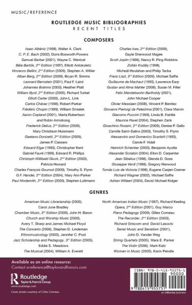 Piano Pedagogy: A Research and Information Guide provides a detailed outline of resources available for research and/or training in piano pedagogy. Like its companion volumes in the Routledge Music Bibliographies series, it serves beginning and advanced students and scholars as a basic guide to current research in the field. The book will includes bibliographies, research guides, encyclopedias, works from other disciplines that are related to piano pedagogy, current sources spanning all formats, including books, journals, audio and video recordings, and electronic sources.