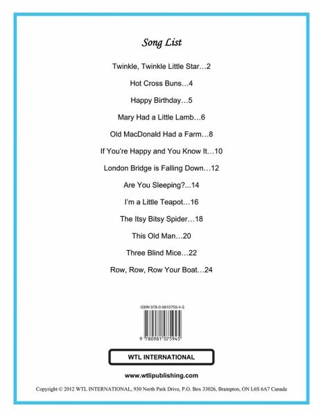 This book, entitled Piano, from the Ready for Excellence Series uses a visual and play-by-number method to introduce young children to playing songs on the piano. The book includes 13 familiar songs in the public domain like "Mary Had a Little Lamb" and "Old MacDonald Had a Farm." The idea of achieving a song-making experience that is very easy for children is rooted in the hope that when children hear themselves creating the sounds of popular songs, they will gain confidence and foster a love for music-making that can spur them on to playing music successfully and achieving in other areas later on in life.