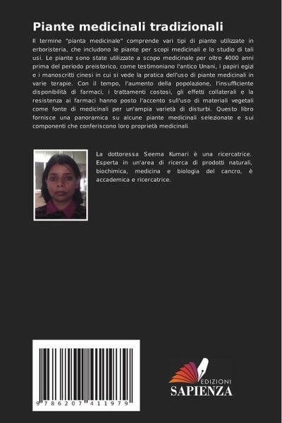 Il termine "pianta medicinale" comprende vari tipi di piante utilizzate in erboristeria, che includono le piante per scopi medicinali e lo studio di tali usi. Le piante sono state utilizzate a scopo medicinale per oltre 4000 anni prima del periodo preistorico, come testimoniano l'antico Unani, i papiri egizi e i manoscritti cinesi in cui si vede la pratica dell'uso di piante medicinali in varie terapie. Con il tempo, l'aumento della popolazione, l'insufficiente disponibilità di farmaci, i trattamenti costosi, gli effetti collaterali e la resistenza ai farmaci hanno posto l'accento sull'uso di materiali vegetali come fonte di medicinali per un'ampia varietà di disturbi. Questo libro fornisce una panoramica su alcune piante medicinali selezionate e sui componenti che conferiscono loro proprietà medicinali.