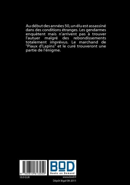 Au début des années 50, un élu est assassiné dans des conditions étranges. Les gendarmes enquètent mais n'arrivent pas à trouver l'autuer malgré des rebondissements totalement imprévus. Le marchand de "Piaux d'Lapins" et le curé trouveront une partie de l'énigme.