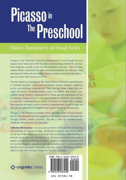 Picasso in the Preschool: Children’s Development in and through the Arts equips future educators with the tools and knowledge needed to successfully integrate a variety of arts into the preschool classroom. The text helps readers better understand the vital connection between the arts and child development while also providing modern strategies and ideas for enhancing curriculum with various art forms. The text begins by speaking to the implications of children’s development in multiple domains across early childhood, namely physical, cognitive, social, and emotional development. Then, the text takes a deep dive into major art forms—including theatre, visual art, dance, and music—concretely linking children’s development to these specific expressions of art. Proceeding chapters focus on the development of children’s own aesthetics and their understanding of others. The book concludes with a chapter that explores the ways in which children’s development in and through the arts can be assessed to strengthen and support teaching and learning. Picasso in the Preschool provides future educators with a strong foundation in child development and suggestions for supporting that development through creative, artistic activities. The text is ideal for courses in early childhood development and education. Catherine McTamaney is an associate professor of the practice in teaching and learning at Peabody College, Vanderbilt University. She is the author of The Tao of Montessori and A Delicate Task, as well as a noted Montessori lecturer across the U.S. and abroad. Dr. McTamaney earned her master’s degree in education with specialization in early childhood education and her doctoral degree in education with specialization in K-12 school administration from Vanderbilt University. She also holds a Montessori Primary Diploma from the Princeton Center for Teacher Education.
