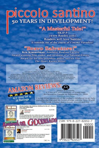 Growing up in rural Calabria, Italy, during the 50s, Piccolo Santino, at eight years old boy, is enrolled into an apprenticeship with a local carpenter; despite being haunted by childhood traumas that challenge his composure when needing to speak, Santino dreams of becoming a poet. As the family eagerly awaits their Father's reunion in America, with his innocence in the balance, Santino grapples with his Father's absence. The reunion with their Father in America shocks Santino, as he fears that the new Father might be an impostor. The new culture further tests his composure. Father's plans to end the children's education at sixteen motivate Santino to secretly enroll in a correspondence course in art and animation to secure a diploma.