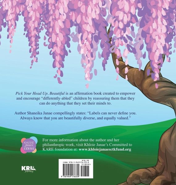 Pick Your Head Up, Beautiful is an affirmation book for children who are "differently abled," to empower, encourage, and reassure them that they can do ANYTHING they set their mind to. Author Shaneika Janae compellingly states: "Labels can never define you. Always know that you are beautifully diverse and equally valued." After just six months old, Author Shaneika Janae learned that her then only child would have challenges that would identify her as "differently-abled." Test after test confirmed continual delays in little Khloie's growth and development. As a result, she was diagnosed with Optic Nerve Atrophy, Cerebral Palsy, Hypotonia, a seizure disorder, and other diagnoses. In addition to all of this, Khloie was then placed on a feeding tube for meals and medications. On Sunday, November 14th, 2021, Khloie Janae peacefully passed away at home with her mother and younger sister, at just 9 years old. The author states: 'Pick Your Head Up, Beautiful is inspired by my two daughters, Khloie Janae, nine years old, and Khyla Janae, who was four years old at the time of this publication. As a mother of two young girls - one with various medical diagnosis and labeled as having "special needs", and the younger who struggled with low self-esteem, it is my responsibility to constantly remind them of how beautiful they are and to reassure them that they can do everything they set their minds to. I pray that this book does that for not just my children, but also parents of differently-abled children, and children who are differently-abled."