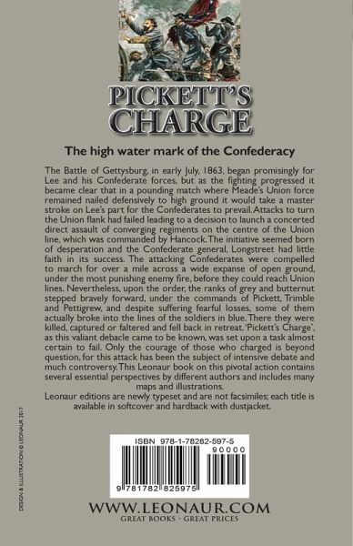 The high water mark of the Confederacy The Battle of Gettysburg, in early July, 1863, began promisingly for Lee and his Confederate forces, but as the fighting progressed it became clear that in a pounding match where Meade’s Union force remained nailed defensively to high ground it would take a master stroke on Lee’s part for the Confederates to prevail. Attacks to turn the Union flank had failed leading to a decision to launch a concerted direct assault of converging regiments on the centre of the Union line, which was commanded by Hancock. The initiative seemed born of desperation and the Confederate general, Longstreet had little faith in its success. The attacking Confederates were compelled to march for over a mile across a wide expanse of open ground, under the most punishing enemy fire, before they could reach Union lines. Nevertheless, upon the order, the ranks of grey and butternut stepped bravely forward, under the commands of Pickett, Trimble and Pettigrew, and despite suffering fearful losses, some of them actually broke into the lines of the soldiers in blue. There they were killed, captured or faltered and fell back in retreat. ‘Pickett’s Charge’, as this valiant debacle came to be known, was set upon a task almost certain to fail. Only the courage of those who charged is beyond question, for this attack has been the subject of intensive debate and much controversy. This Leonaur book on this pivotal action contains several essential perspectives by different authors and includes many maps and illustrations. Leonaur editions are newly typeset and are not facsimiles; each title is available in softcover and hardback with dustjacket.