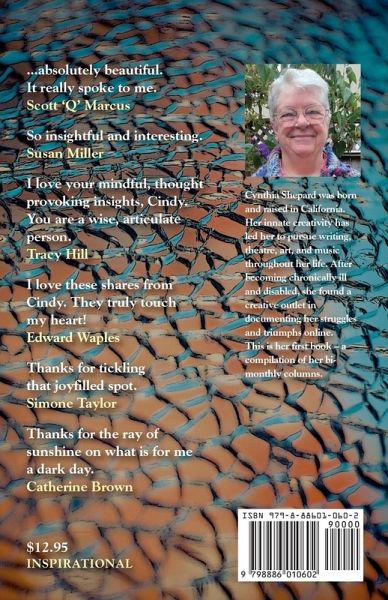 A note from the author: This book began as a series of semi-monthly columns for a friend's webpage. He has graciously allowed me to publish them here for you. Although the book is broken down into four seasons (and yes, I know they're not the ACTUAL seasons, but they make sense to me), feel free to read them in any order you choose. If you need a dash of winter in the middle of July, go for it! Can't wait for Spring? Skip ahead! Take notes, draw pictures, whatever makes this book meaningful to you. If you or a loved one are battling a chronic illness or have become disabled, I hope you'll find understanding, compassion, and some joy sprinkled throughout these pages. "... absolutely beautiful. It really spoke to me."-Scott 'Q' Marcus, Motivational Speaker