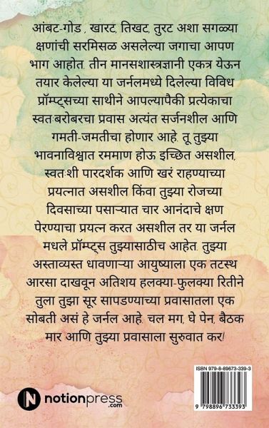 We are part of a world that is a mixture of sweet and sour, salty, spicy and bitter moments. With the various prompts given in this journal by Sanjyot, each of us will have a very creative and fun journey with ourselves. Whether you want to indulge in your emotional world, are trying to be transparent and true to yourself, or are trying to sow four moments of happiness in the space of your daily life, then the prompts in this journal are for you. This journal is a companion on the journey of finding your tune in a very light-hearted way by showing a neutral mirror to your chaotic running life. So, take a pen, sit down and start your journey!