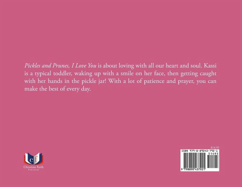 Pickles and Prunes, I Love You is about loving with all our heart and soul. Kassi is a typical toddler, waking up with a smile on her face, then getting caught with her hands in the pickle jar! With a lot of patience and prayer, you can make the best of every day.