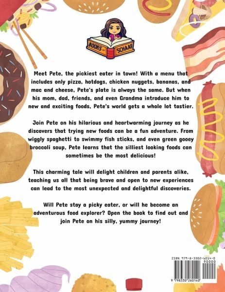 Once upon a time in a town not so far away, lived a little boy named Pete. Pete was known far and wide as the pickiest eater in the land. While other kids savored all sorts of delicious dishes, Pete had a list of only five foods he would even consider: pizza, hotdogs, chicken nuggets, bananas, and mac and cheese. To Pete, everything else looked strange and, frankly, a little bit silly. But little did Pete know, an adventure was about to begin-one that would take him on a culinary journey full of wiggly noodles, fishy sticks, green goo, and many other surprising delights. Join Pete as he discovers that trying new foods can be a whole lot of fun, and sometimes, even the silliest looking food can turn out to be delicious!¿