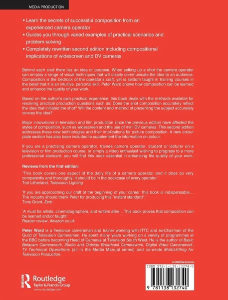 Behind each shot there lies an idea or purpose. When setting up a shot, the camera operator can employ a range of visual techniques that will clearly communicate the idea to an audience. Composition is the bedrock of the operator's craft, yet is seldom taught in training courses in the belief that it is an intuitive, personal skill. Peter Ward shows how composition can be learned, to enhance the quality of your work. Based on the author's own practical experience, the book deals with the methods available for resolving practical production questions such as: Does the shot composition accurately reflect the idea that initiated the shot? Will the content and method of presenting the subject accurately convey the idea? Major innovations in television and film production since the previous edition have affected the styles of composition, such as wide-screen and the use of mini DV cameras. These new technologies and their implications for picture composition are addressed in this new edition. A new colour plate section is also being included to update the section on colour. If you are a practising camera operator, trainee camera operator, student or lecturer on a television or film production course, or simply a video enthusiast wishing to progress to a more professional standard you will find this book essential in enhancing the quality of your work.