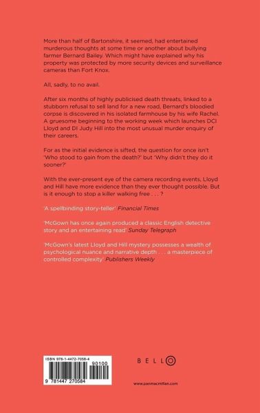 More than half of Bartonshire, it seemed, had entertained murderous thoughts at some time or another about bullying farmer Bernard Bailey. Which might have explained why his property was protected by more security devices and surveillance cameras than Fort Knox. All, sadly, to no avail. After six months of highly publicised death threats, linked to a stubborn refusal to sell land for a new road, Bernard's bloodied corpse is discovered in his isolated farmhouse by his wife Rachel. A gruesome beginning to the working week which launches DCI Lloyd and DI Judy Hill into the most unusual murder enquiry of their careers. For as the initial evidence is sifted, the question for once isn't 'Who stood to gain from the death?' but 'Why didn't they do it sooner?' With the ever-present eye of the camera recording events, Lloyd and Hill have more evidence than they ever thought possible. But is it enough to stop a killer walking free . . . ?