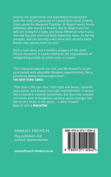 Desires are suppressed and aspirations thwarted for both the staff and patients of a psychiatric ward. Orderly Oliver pines for Margaret Thatcher. Dr Rupert wants Nurse Whitehall who wants Dr Rupert. But Dr Rupert and his wife are trying for a baby and Nurse Whitehall who is also married has just returned from maternity leave. As for the patients, Duncan secretly loves Anna who secretly loves Martin who openly loves no one. Both a love story and a modern allegory of the state, Picture Ourselves in Latvia confronts the impossibility of categorising people as either sane or insane.