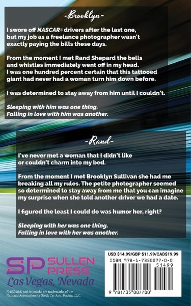 I swore I would never get involved with another NASCAR driver or go to another race again. Money talks and I needed a butt-ton of it since free-lance photography wasn't exactly helping me pay all of the bills these days. From the moment I met Rand Shepard the bells and whistles immediately went off in my head. This giant of a man covered in tattoos was as far away from good as you could possibly get. They called him a bad boy, and a playboy, but that had to be the understatement of the century. I'm one hundred percent sure the man's vocabulary didn't even include the word good nor has he ever had a woman tell him no before. I'm determined to stay away from Rand Shepard until I can't and then all bets are off. Sleeping with him was one thing. Bringing him home was another. Promises are made that I know will be broken. Falling in love with Rand wasn't something I expected to do, but it's worth the heartbreak even if he leaves me in pieces.