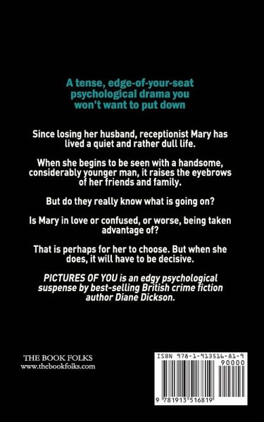A tense, edge-of-your-seat psychological drama you won't want to put down Since losing her husband, receptionist Mary has lived a quiet and rather dull life. When she begins to be seen with a handsome, considerably younger man, it raises the eyebrows of her friends and family. But do they really know what is going on? Is Mary in love or confused, or worse, being taken advantage of? That is perhaps for her to choose. But when she does, it will have to be decisive. PICTURES OF YOU is an edgy psychological suspense by best-selling British crime fiction author Diane Dickson. Look out for her other titles on amazon, which include the new Liverpool based DI Jordan Carr series, plus the popular DI Tanya Miller murder investigations series (Broken Angel is book 1), and the popular titles LEAVING GEORGE and DEPTHS OF DECEPTION.