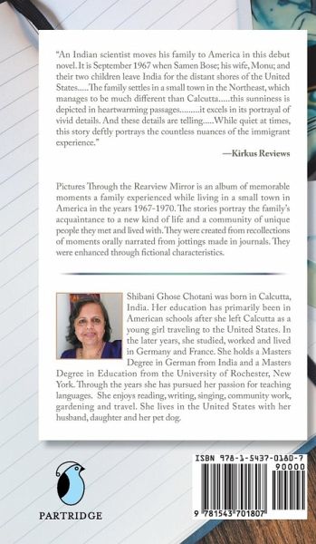 An Indian scientist moves his family to America in this debut novel. It is September 1967 when Samen Bose; his wife, Monu; and their two children leave India for the distant shores of the United States.....The family settles in a small town in the Northeast, which manages to be much different than Calcutta.....this sunniness is depicted in heartwarming passages.........it excels in its portrayal of vivid details. And these details are telling.....While quiet at times, this story deftly portrays the countless nuances of the immigrant experience. Kirkus Reviews Pictures Through the Rearview Mirror is an album of memorable moments a family experienced while living in a small town in America in the years 1967-1970. The stories portray the familys acquaintance to a new kind of life and a community of unique people they met and lived with. They were created from recollections of moments orally narrated from jottings made in journals. They were enhanced through fictional characteristics.