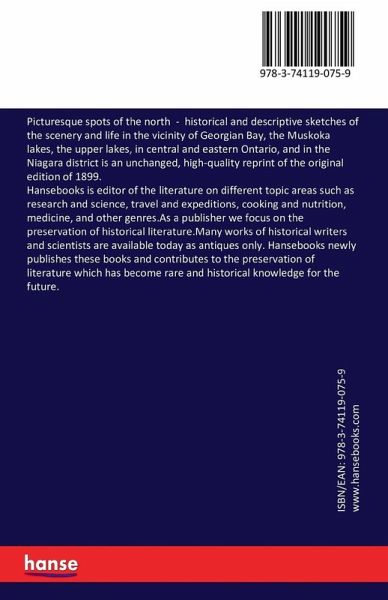 Picturesque spots of the north - historical and descriptive sketches of the scenery and life in the vicinity of Georgian Bay, the Muskoka lakes, the upper lakes, in central and eastern Ontario, and in the Niagara district is an unchanged, high-quality reprint of the original edition of 1899.