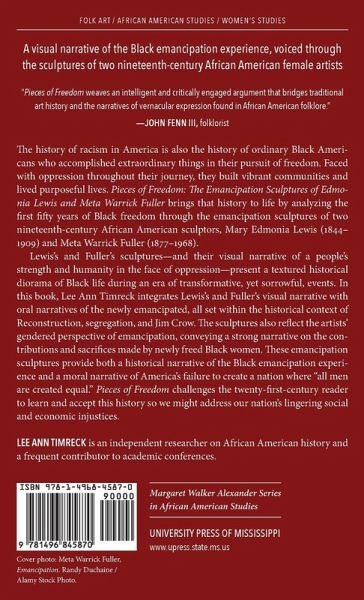 The history of racism in America is also the history of ordinary Black Americans who accomplished extraordinary things in their pursuit of freedom. Faced with oppression throughout their journey, they built vibrant communities and lived purposeful lives. Pieces of Freedom: The Emancipation Sculptures of Edmonia Lewis and Meta Warrick Fuller brings that history to life by analyzing the first fifty years of Black freedom through the emancipation sculptures of two nineteenth-century African American sculptors, Mary Edmonia Lewis (1844-1909) and Meta Warrick Fuller (1877-1968). Lewis's and Fuller's sculptures--and their visual narrative of a people's strength and humanity in the face of oppression--present a textured historical diorama of Black life during an era of transformative, yet sorrowful, events. In this book, Lee Ann Timreck integrates Lewis's and Fuller's visual narrative with oral narratives of the newly emancipated, all set within the historical context of Reconstruction, segregation, and Jim Crow. The sculptures also reflect the artists' gendered perspective of emancipation, conveying a strong narrative on the contributions and sacrifices made by newly freed Black women. These emancipation sculptures provide both a historical narrative of the Black emancipation experience and a moral narrative of America's failure to create a nation where "all men are created equal." Pieces of Freedom challenges the twenty-first-century reader to learn and accept this history so we might address our nation's lingering social and economic injustices.