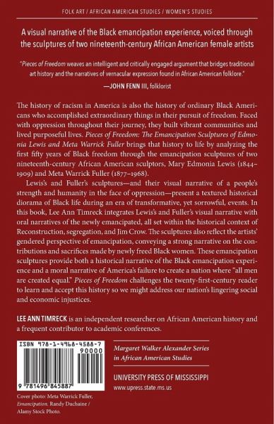 The history of racism in America is also the history of ordinary Black Americans who accomplished extraordinary things in their pursuit of freedom. Faced with oppression throughout their journey, they built vibrant communities and lived purposeful lives. Pieces of Freedom: The Emancipation Sculptures of Edmonia Lewis and Meta Warrick Fuller brings that history to life by analyzing the first fifty years of Black freedom through the emancipation sculptures of two nineteenth-century African American sculptors, Mary Edmonia Lewis (1844-1909) and Meta Warrick Fuller (1877-1968). Lewis's and Fuller's sculptures--and their visual narrative of a people's strength and humanity in the face of oppression--present a textured historical diorama of Black life during an era of transformative, yet sorrowful, events. In this book, Lee Ann Timreck integrates Lewis's and Fuller's visual narrative with oral narratives of the newly emancipated, all set within the historical context of Reconstruction, segregation, and Jim Crow. The sculptures also reflect the artists' gendered perspective of emancipation, conveying a strong narrative on the contributions and sacrifices made by newly freed Black women. These emancipation sculptures provide both a historical narrative of the Black emancipation experience and a moral narrative of America's failure to create a nation where "all men are created equal." Pieces of Freedom challenges the twenty-first-century reader to learn and accept this history so we might address our nation's lingering social and economic injustices.
