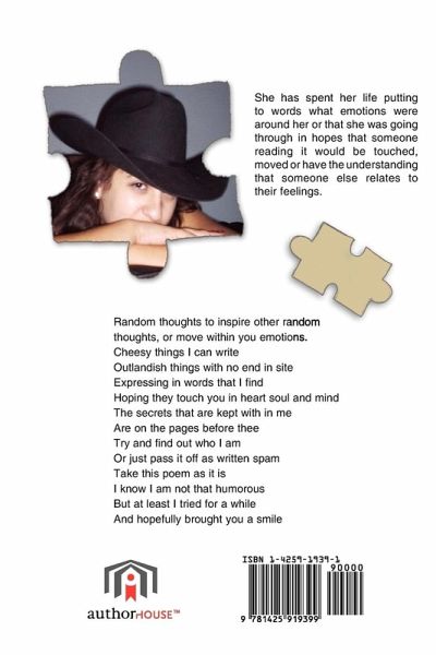 Random thoughts to inspire other random thoughts, or move within you emotions. Cheesy things I can write Outlandish things with no end in site Expressing in words that I find Hoping they touch you in heart soul and mind The secrets that are kept with in me Are on the pages before thee Try and find out who I am Or just pass it off as written spam Take this poem as it is I know I am not that humorous But at least I tried for a while And hopefully brought you a smile