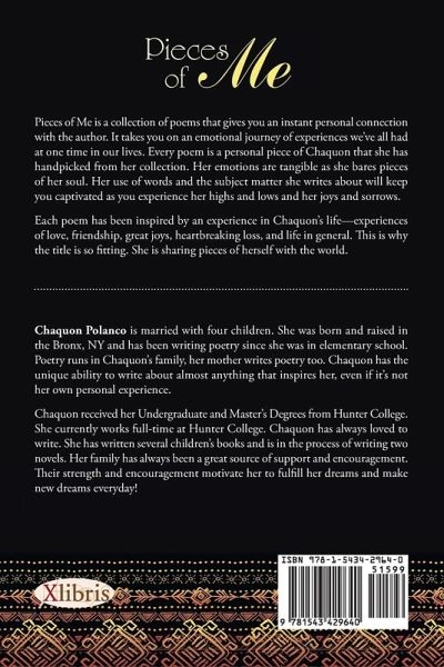 Pieces of Me is a collection of poems that gives you an instant personal connection with the author. It takes you on an emotional journey of experiences we’ve all had at one time in our lives. Every poem is a personal piece of Chaquon that she has handpicked from her collection. Her emotions are tangible as she bares pieces of her soul. Her use of words and the subject matter she writes about will keep you captivated as you experience her highs and lows and her joys and sorrows. Each poem has been inspired by an experience in Chaquon’s life—experiences of love, friendship, great joys, heartbreaking loss, and life in general. This is why the title is so fitting. She is sharing pieces of herself with the world.