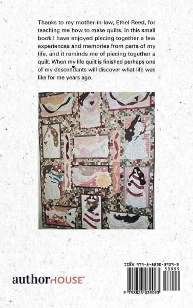 Thanks to my mother-in-law, Ethel Reed, for teaching me how to make quilts. In this small book I have enjoyed piecing together a few experiences and memories from parts of my life, and it reminds me of piecing together a quilt. When my life quilt is finished perhaps one of my descendants will discover what life was like for me years ago.