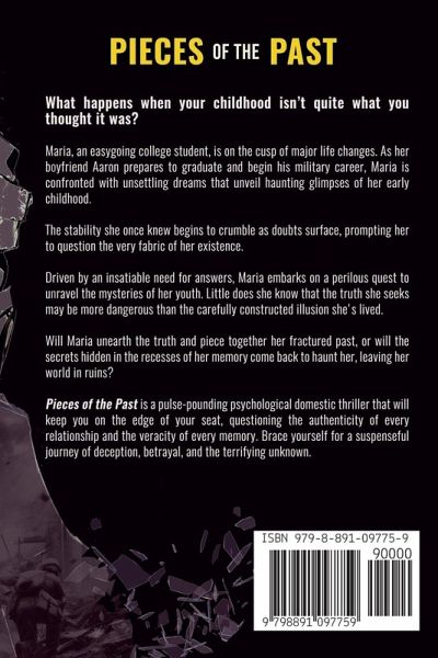 What happens when your childhood isn't quite what you thought it was? Maria, an easygoing college student, is on the cusp of major life changes. As her boyfriend Aaron prepares to graduate and begin his military career, Maria is confronted with unsettling dreams that unveil haunting glimpses of her early childhood. The stability she once knew begins to crumble as doubts surface, prompting her to question the very fabric of her existence. Driven by an insatiable need for answers, Maria embarks on a perilous quest to unravel the mysteries of her youth. Little does she know that the truth she seeks may be more dangerous than the carefully constructed illusion she's lived. Will Maria unearth the truth and piece together her fractured past, or will the secrets hidden in the recesses of her memory come back to haunt her, leaving her world in ruins? Pieces of the Past is a pulse-pounding psychological domestic thriller that will keep you on the edge of your seat, questioning the authenticity of every relationship and the veracity of every memory. Brace yourself for a suspenseful journey of deception, betrayal, and the terrifying unknown.